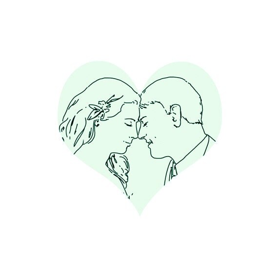40.00 EUR, by microuniverse via Etsy http://ift.tt/1FMZCZC Custom Wedding Portrait Original Drawing portraits from photographs Bride & Groom illustration Hand drawn Wedding anniversary Green heart